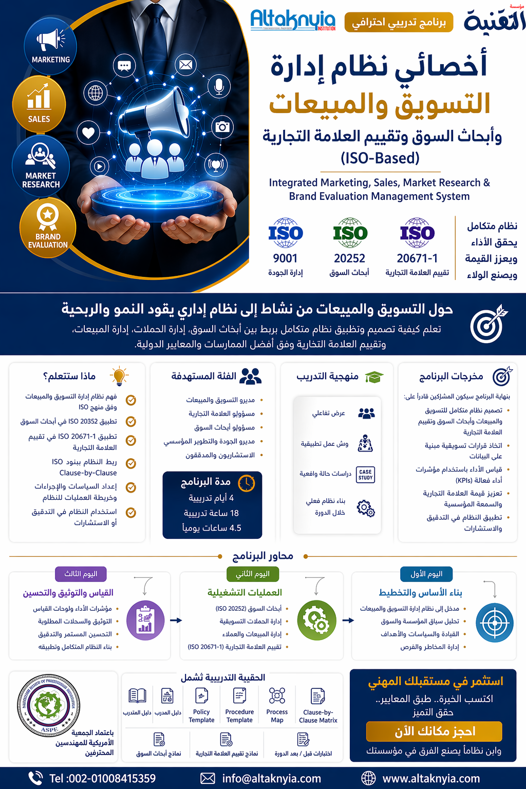 أصبحت المؤسسات الرائدة هي تلك التي تدير التسويق والمبيعات كنظام متكامل قائم على البيانات، ومنضبط بالمعايير الدولية، وموجه لتحقيق القيمة المستدامة.