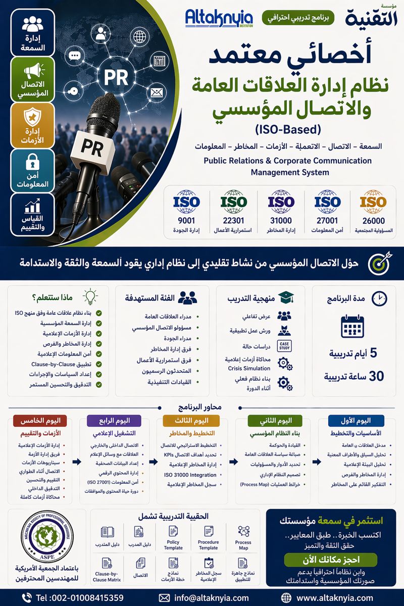 أخصائي معتمد نظام إدارة العلاقات العامة والاتصال المؤسسي وفق منهج ISO